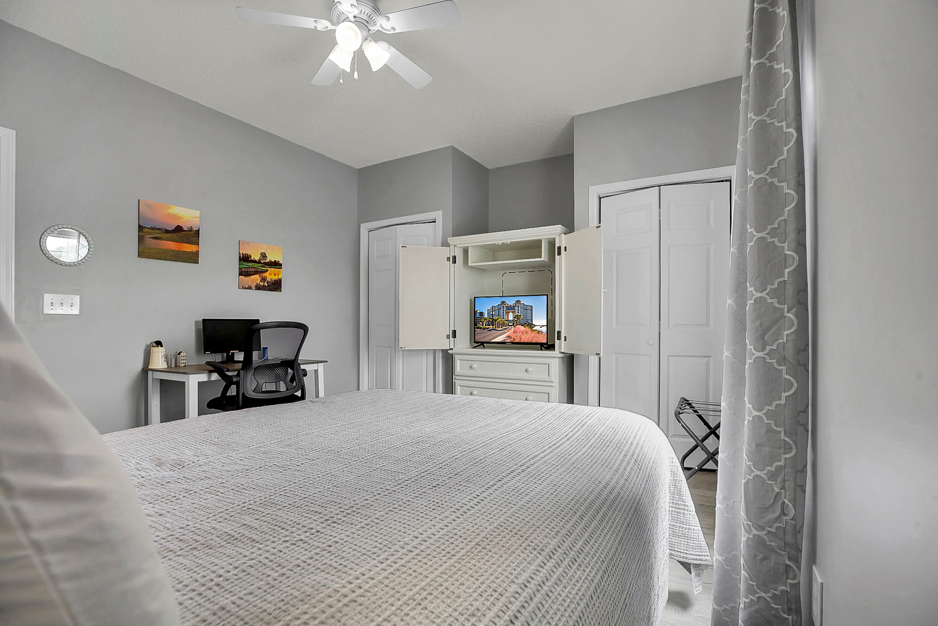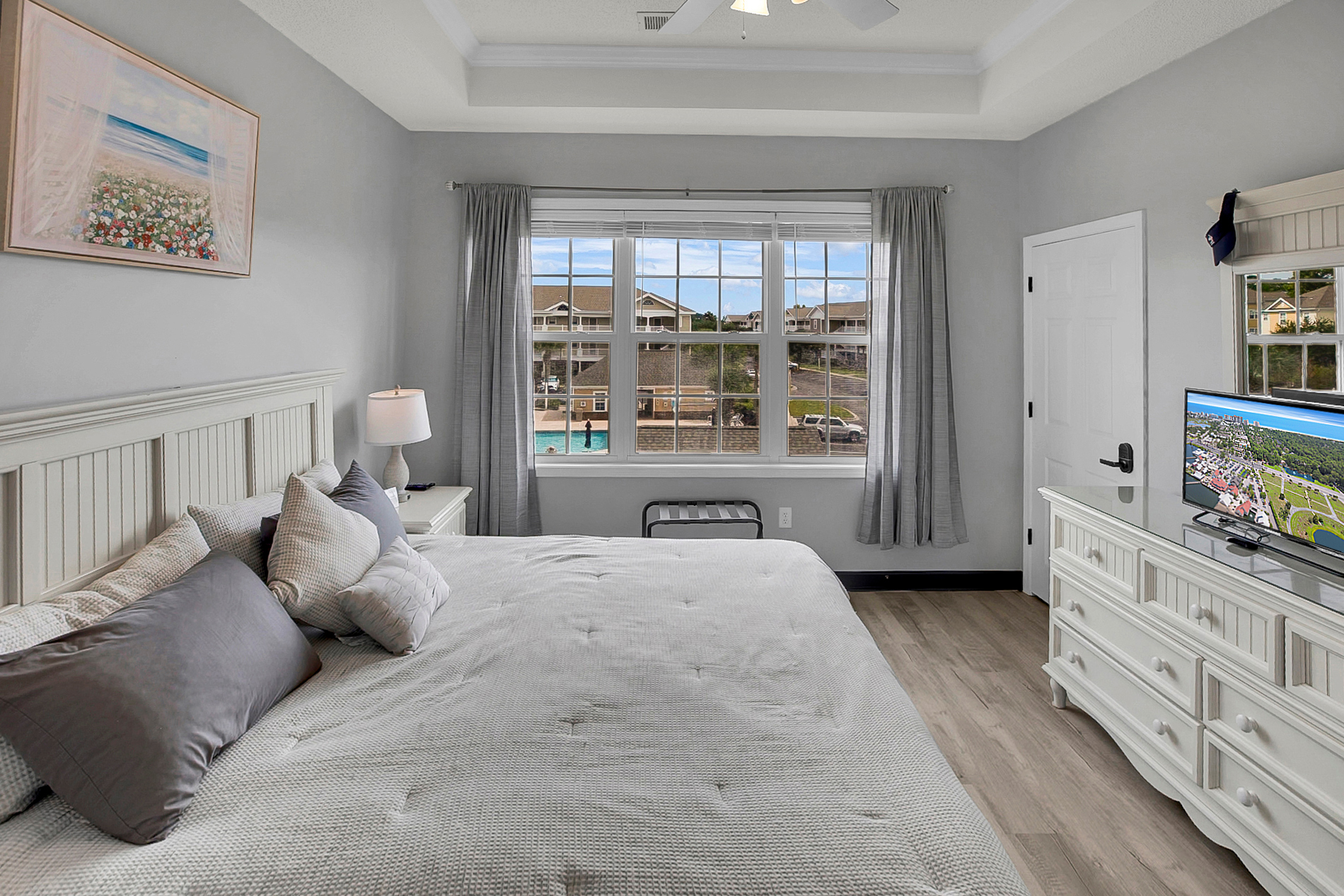 Master Bedroom: King bed, flat-screen TV, and ensuite bathroom.