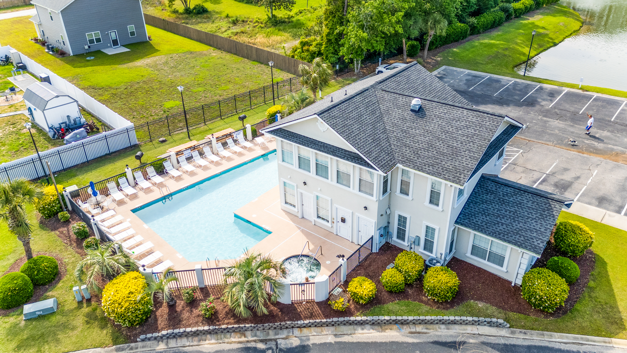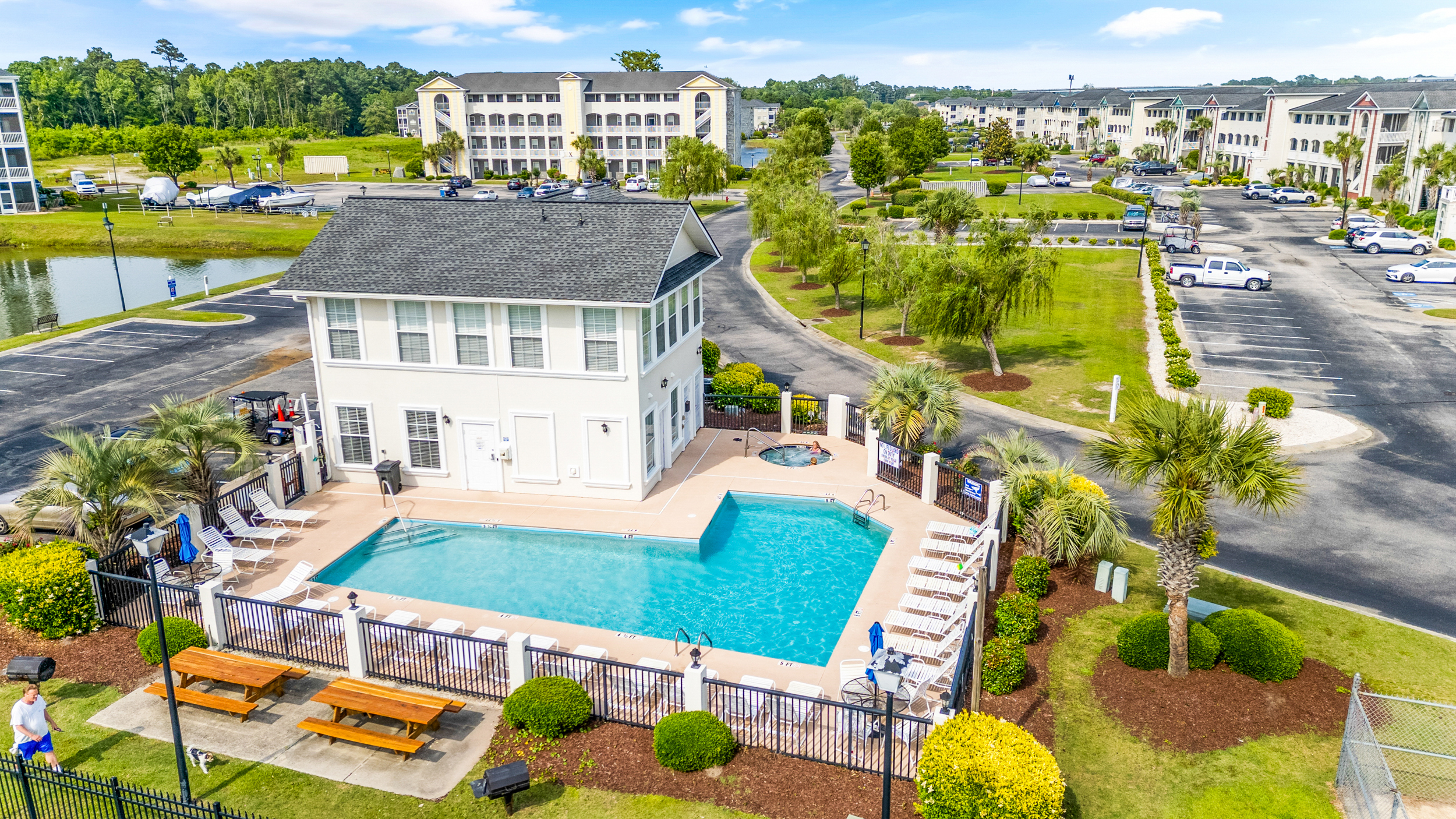 * Resort-style amenities including pool, hot tub, and fitness center
