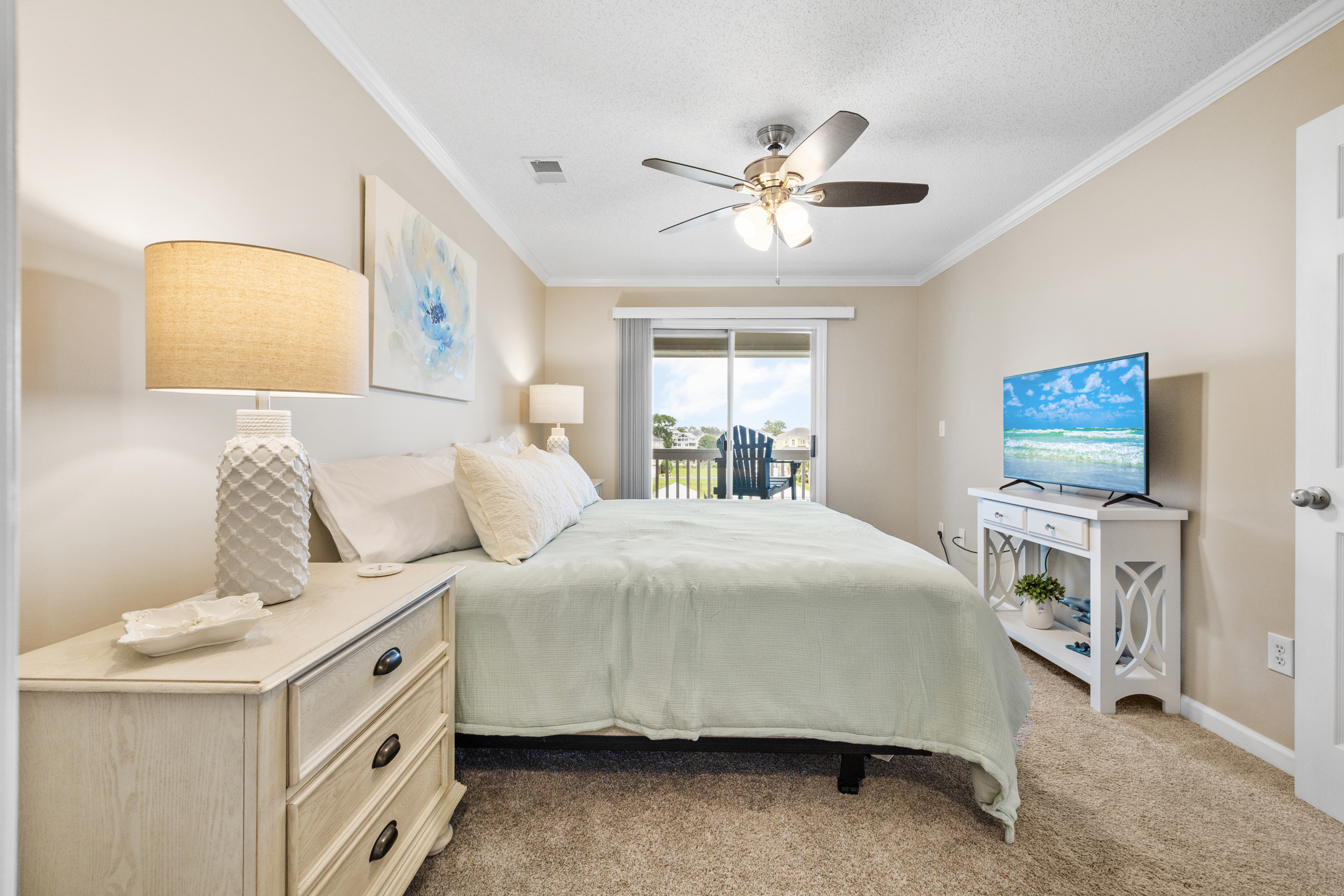 Escape to our serene and luxurious condo, perfect for a family vacation or a romantic getaway. With the convenience of being just a short drive from the beach and all the comforts of home, it's the ideal vacation destination. Wake up to the sound of waves crashing and start your day with a cup of coffee on your private balcony, watching the boats pass by. Then, head down to the pool for a refreshing dip or take a stroll along the Waterway.