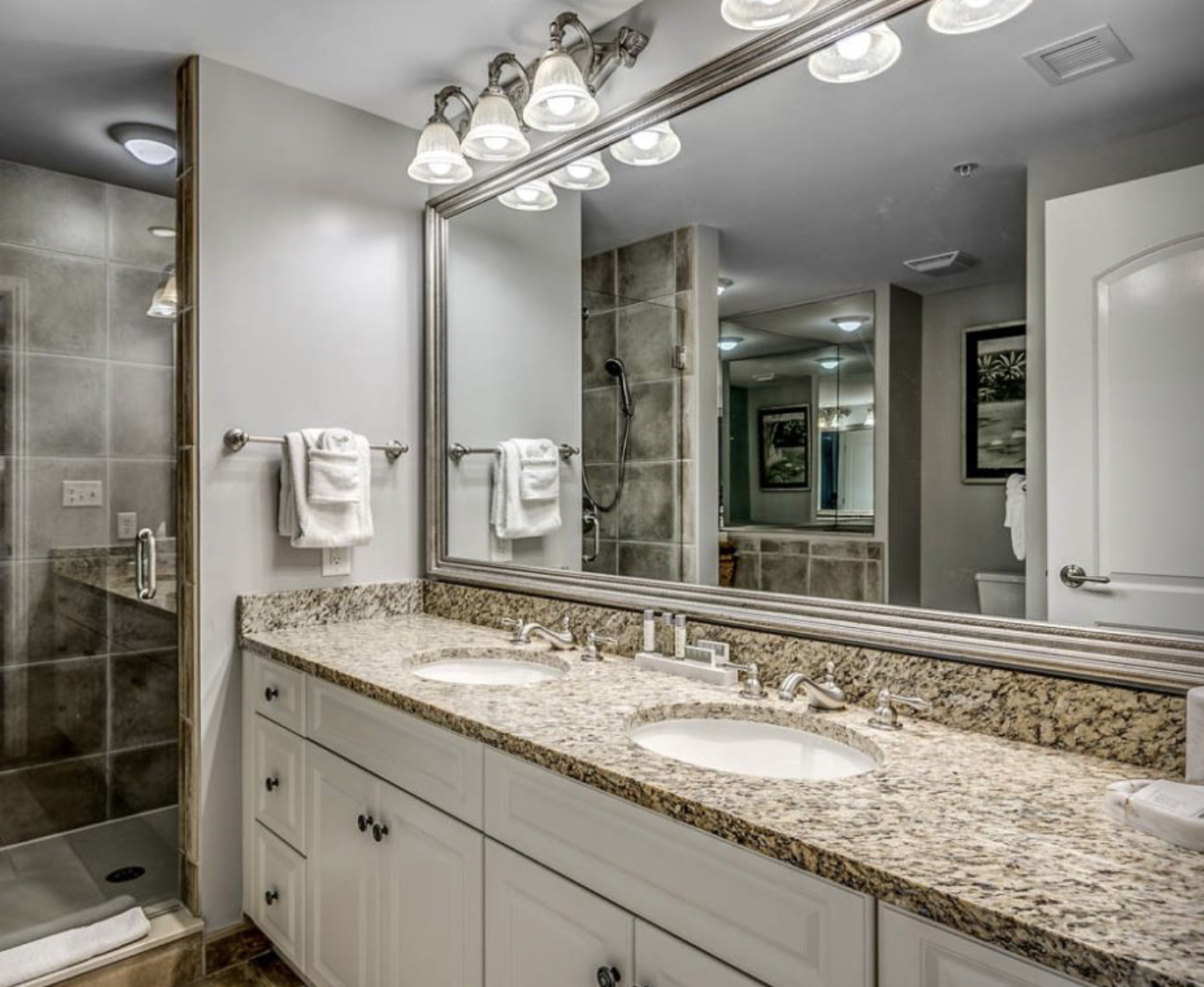 Master Suite: King Bed with Private Bath featuring Jacuzzi Tub & Glass-Enclosed Shower