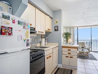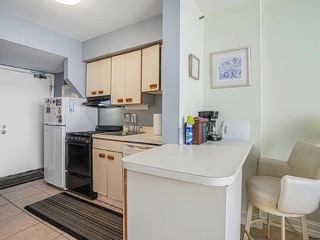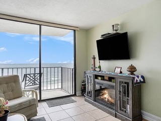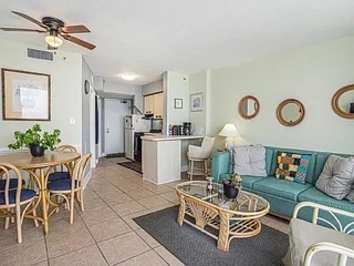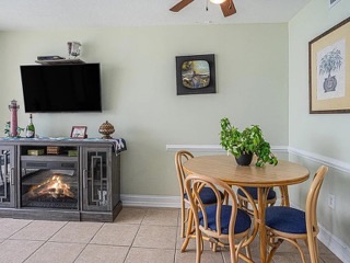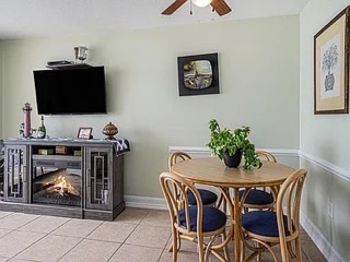 Welcome to this charming one-bedroom, one-bathroom oceanfront condo in Carolina Reef, nestled in the highly sought-after Crescent Beach section of North Myrtle Beach! This beautifully furnished unit features a fully equipped kitchen with ample countertop and cabinet space, perfect for preparing delicious meals. The additional breakfast nook offers extra dining and entertaining space. The inviting living and dining area includes an electric fireplace and elegant ceramic tile flooring throughout the unit. The bathroom features a convenient shower-tub combo for comfort and functionality.
