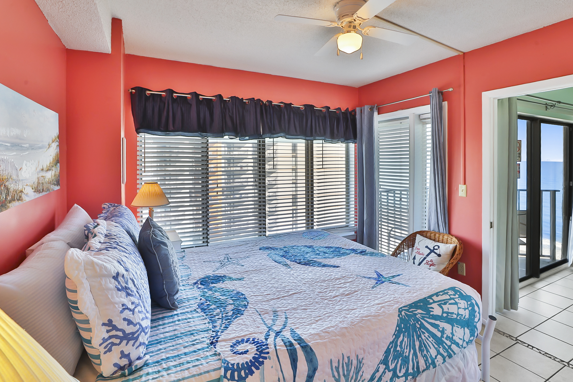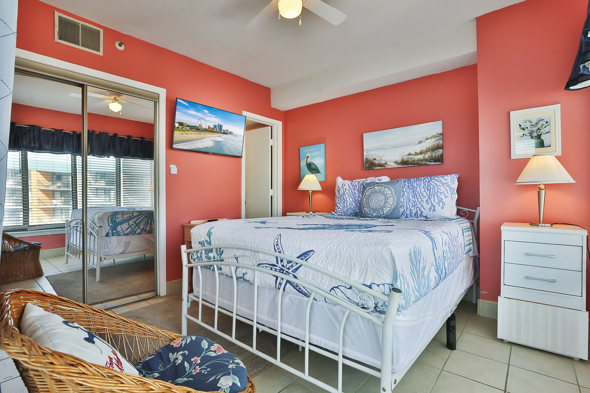 Bedroom 1: (2) Full/Double Beds, flat-screen TV, ensuite bathroom, and private balcony (sleeps 4)